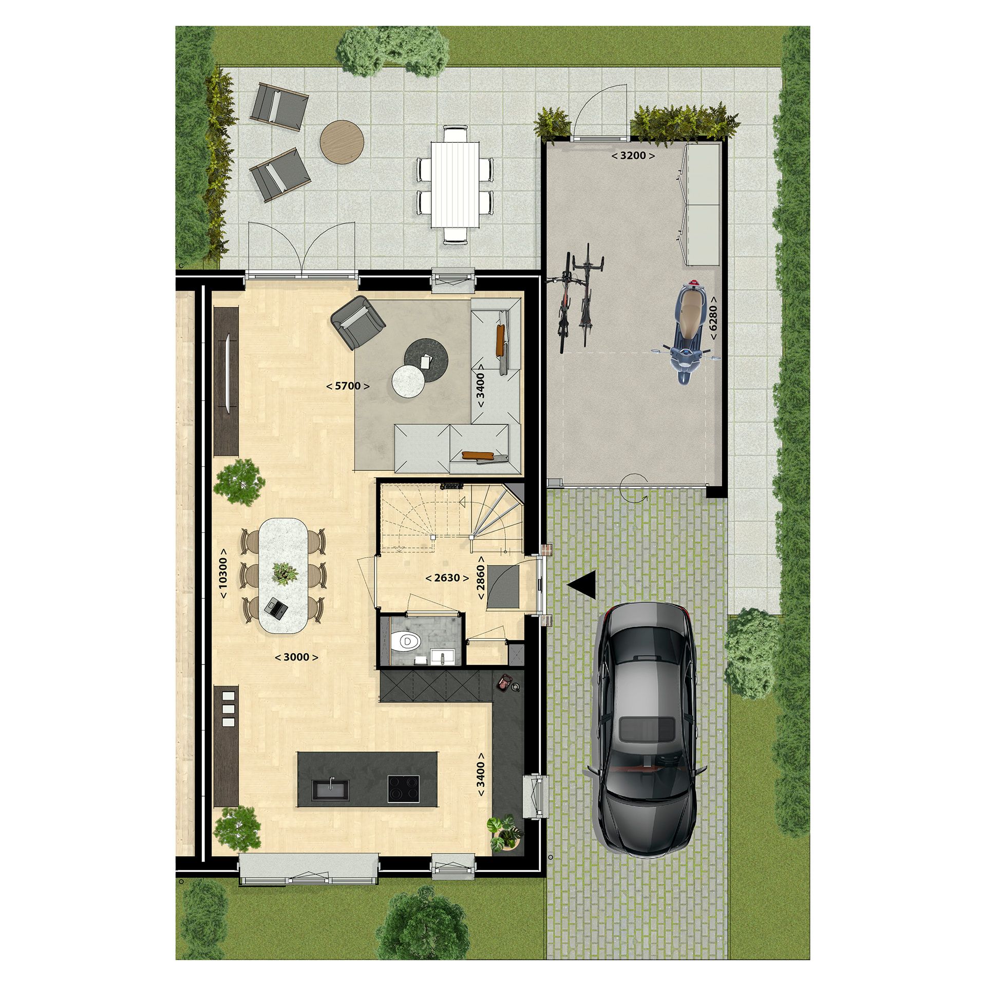 Mogelijkheid om keuken en woonkamer om te wisselen